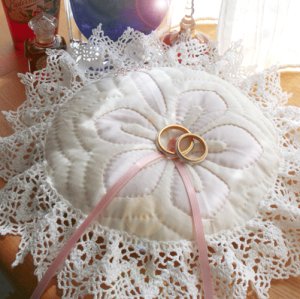 挙式のその日、永遠の愛を誓い・交わすマリッジリングを、そっと包み込むよう、ふっくらとした丸型のピローにどうぞ・・・